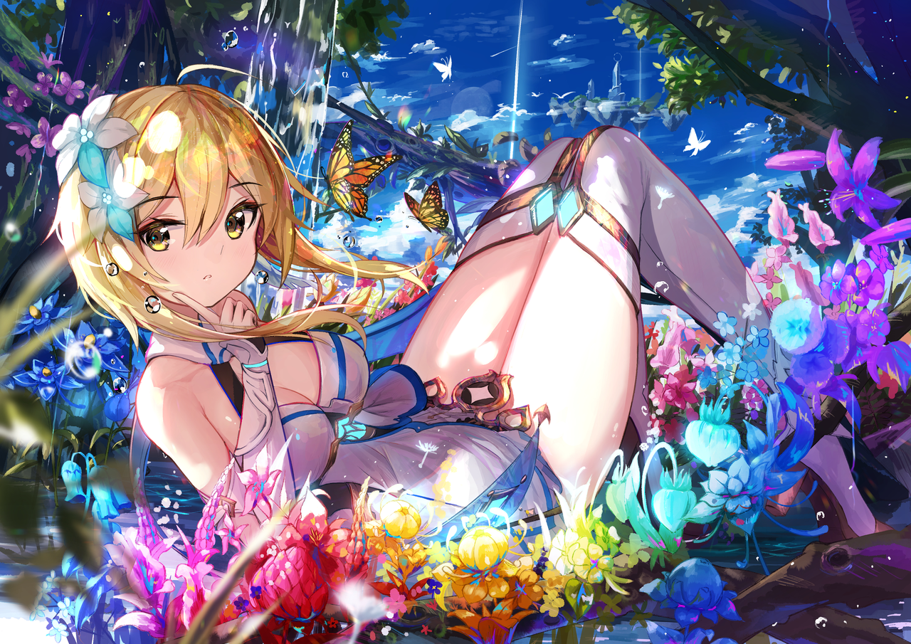 原神 蛍(原神) 魅惑のふともも 花と女の子 女の子 サイハイブーツ