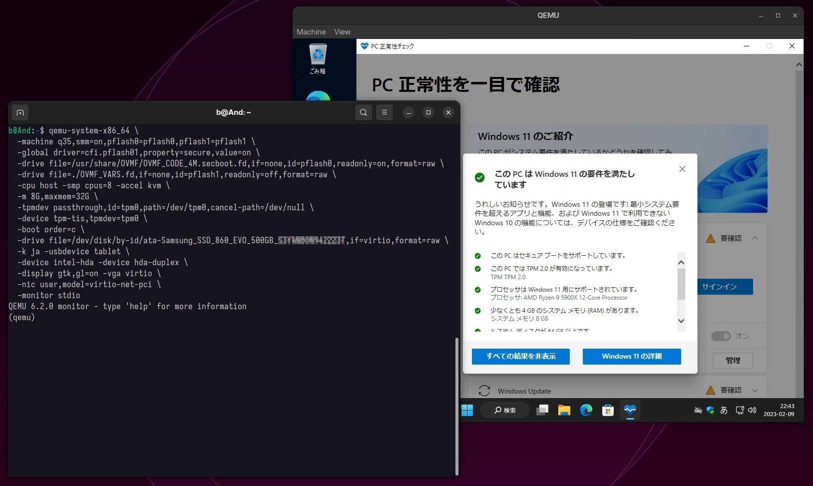 「Windows 11の動作要件を満たすPC」で稼動しているLinuxのQEMU上で,Windows 11を導入時の要件不足で怒られることなく仮想化できた。 最近のLinuxカーネルだと “TPM cancel path” を実装していないらしく,TPM器をQEMUを介してWindowsに見せるときに生じた問題の原因を特定するのに苦労した。 ただ,目標であるところの「原神のanti-cheat機構を掻い潜って仮想機械上で〝安全に〟原神を遊ぶ」という段階にはほどとおい。PCIe透過もできてないし,そもそも今の状態だとanti-cheat機構が作動してしまう。 https://gnusocial.jp/url/1461646 -