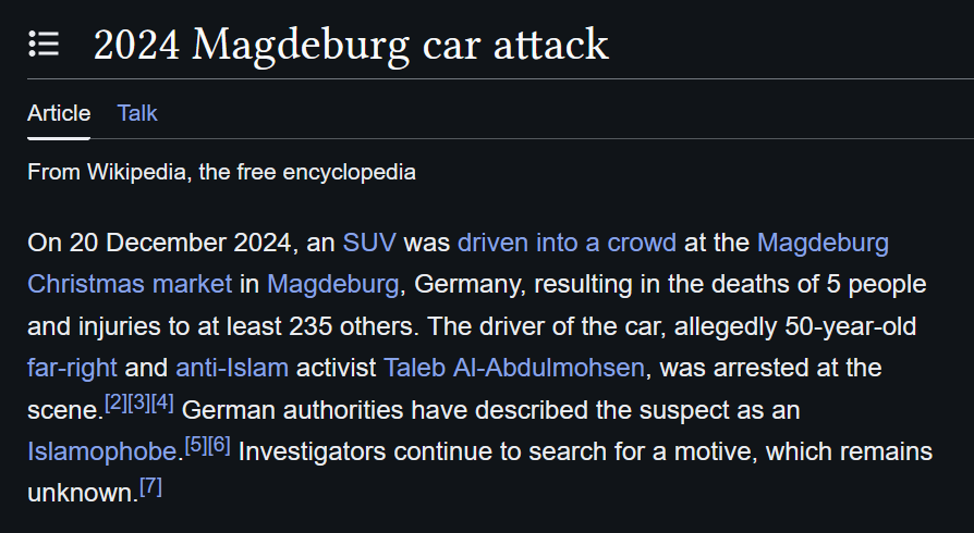 And why would he imitate a well-known Islamist terror attack from 8 years ago, driving amok into a Christmas market, if he was anti-Islam? Makes total sense.