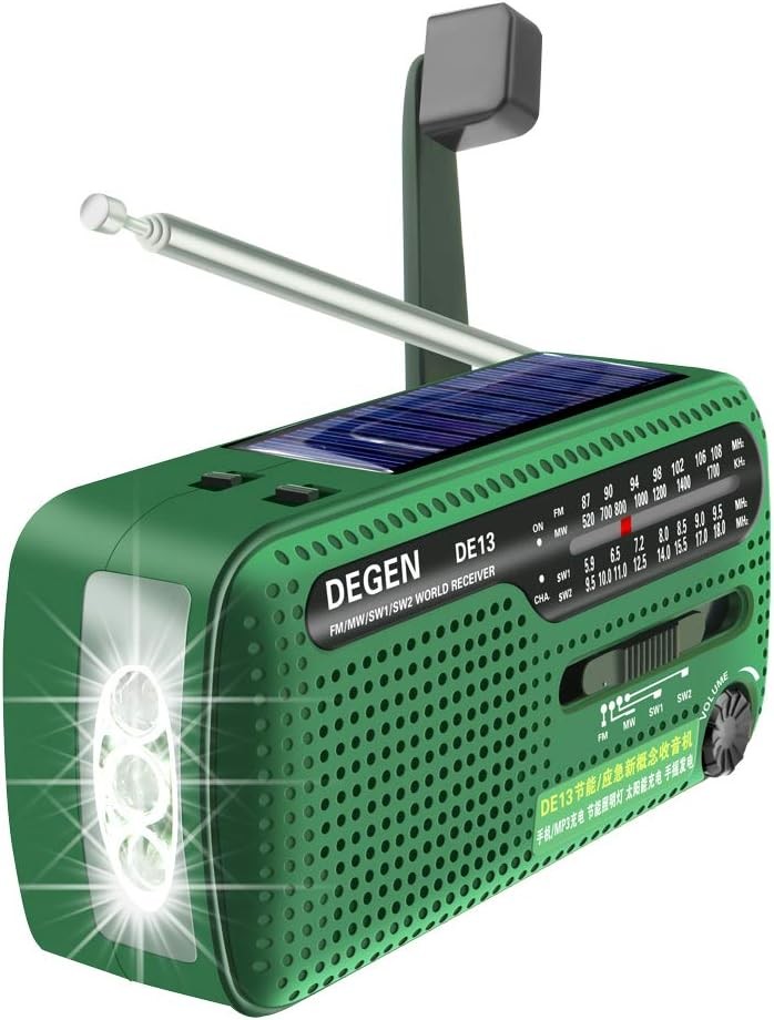 - Que es buena cosa tener una radio de emergencia como la DEGEN DE13 (manivela, placa, pilas, batería, usb de carga y para cargar, linterna, ...)