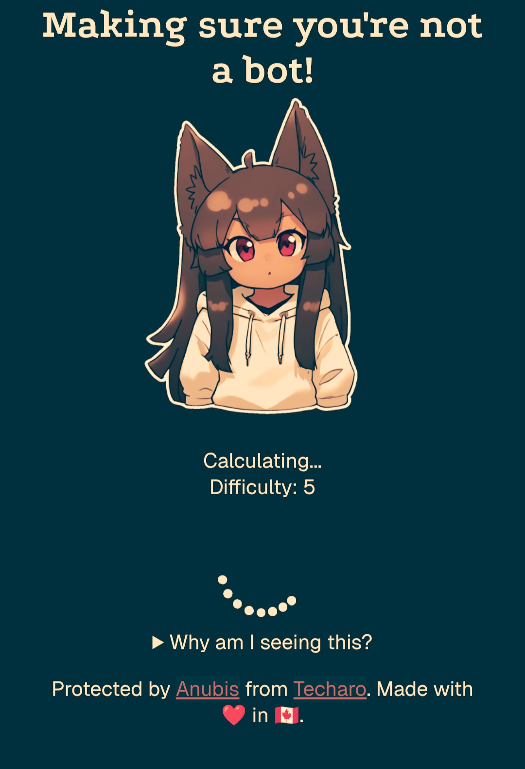 @jae Honestly, Anubis got way more annoying than CF boats. At least with boats you don't need to wait for 90 seconds to complete a difficulty 4 challenge to access LKML. It's not like the scrapers can't subscribe to it and get it all sent to them. It's retarded.