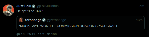 @caekislove @sickburnbro I'll say the unpopular thing. I don't care. Musk (and others) can take their balls and go home. They can fund it by building actual businesses without government contracts that I pay for.