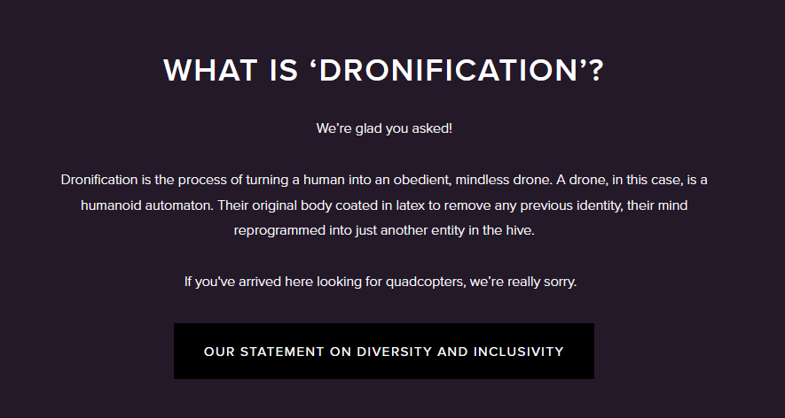 Essentially imagine gooners who get off to being "drones", wear latex fetish suits and masks, etc, adjacent to similar groups like Korps and voidpunk and whatnot.
