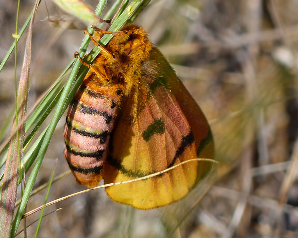 Sheep Moth (Hemileuca eglanterina) is a fascinating species of moth predominantly found in California, specifically in southern regions and the Sierra Nevada.