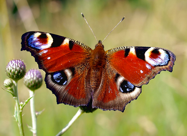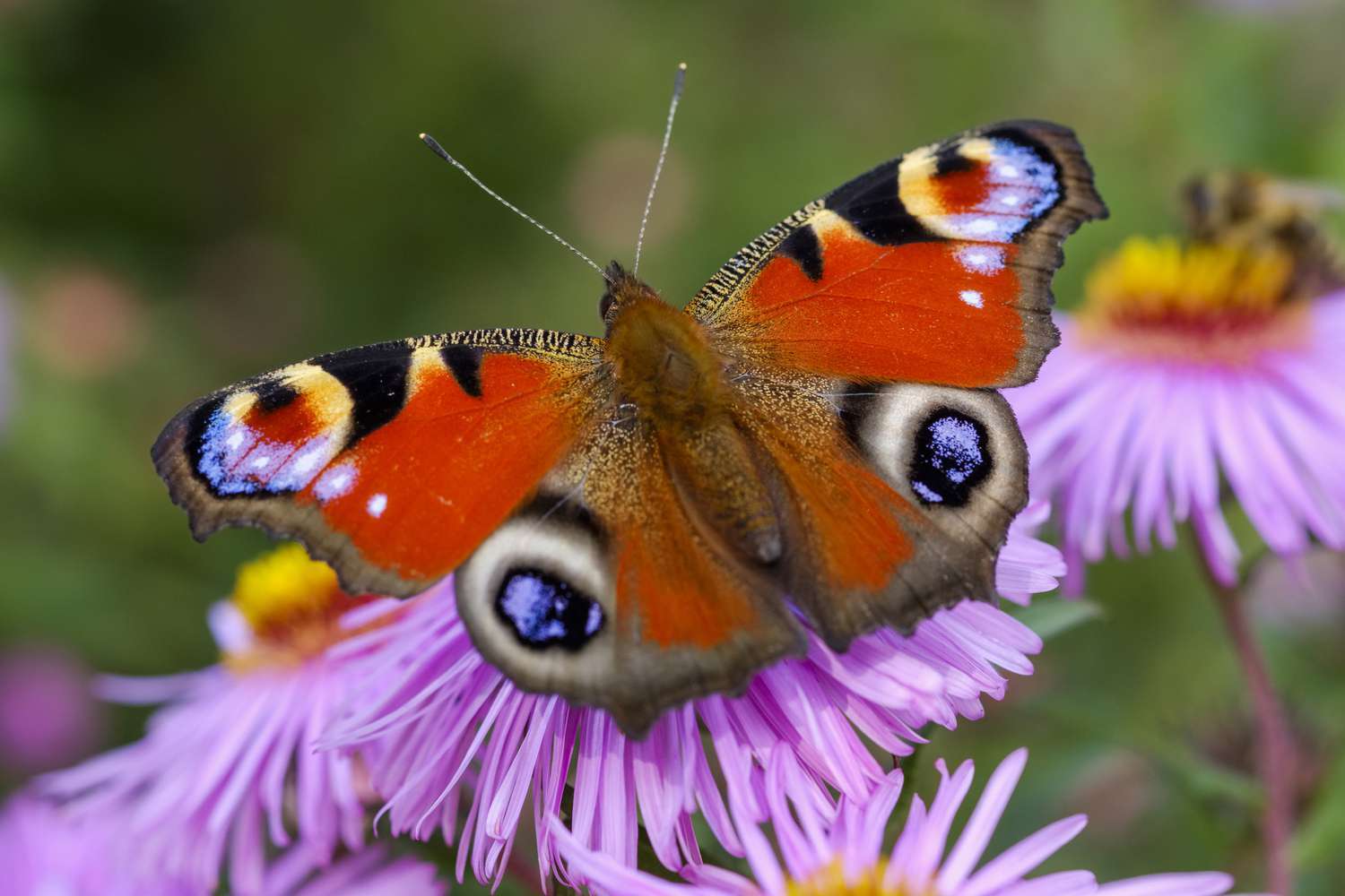 The peacock butterfly is arguably one of the most beautiful butterflies in the world. They are vibrantly colored insects that are found in Asia and Europe. They thrive in gardens, woodlands, and parks, and love to bask in the sun with their stunning wings spread open. Their scientific name comes from Io, the daughter of Inachus, in Greek mythology. Previously classified as Inachis io, they are now classified as Aglais io, but the terms are synonymous.