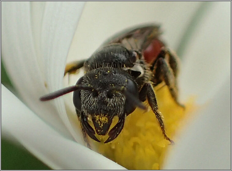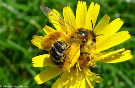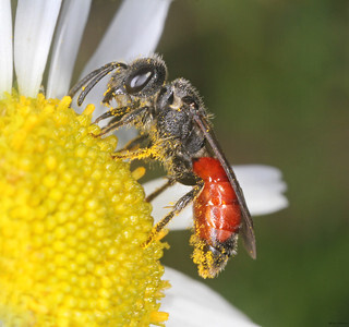 The hairy pantaloon bees are often found feeding on pollen and nectar on flowers in the Asteraceae family.