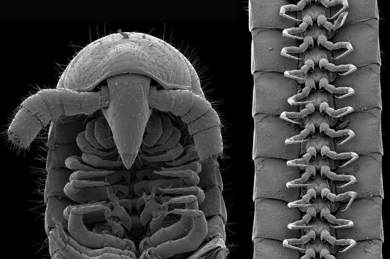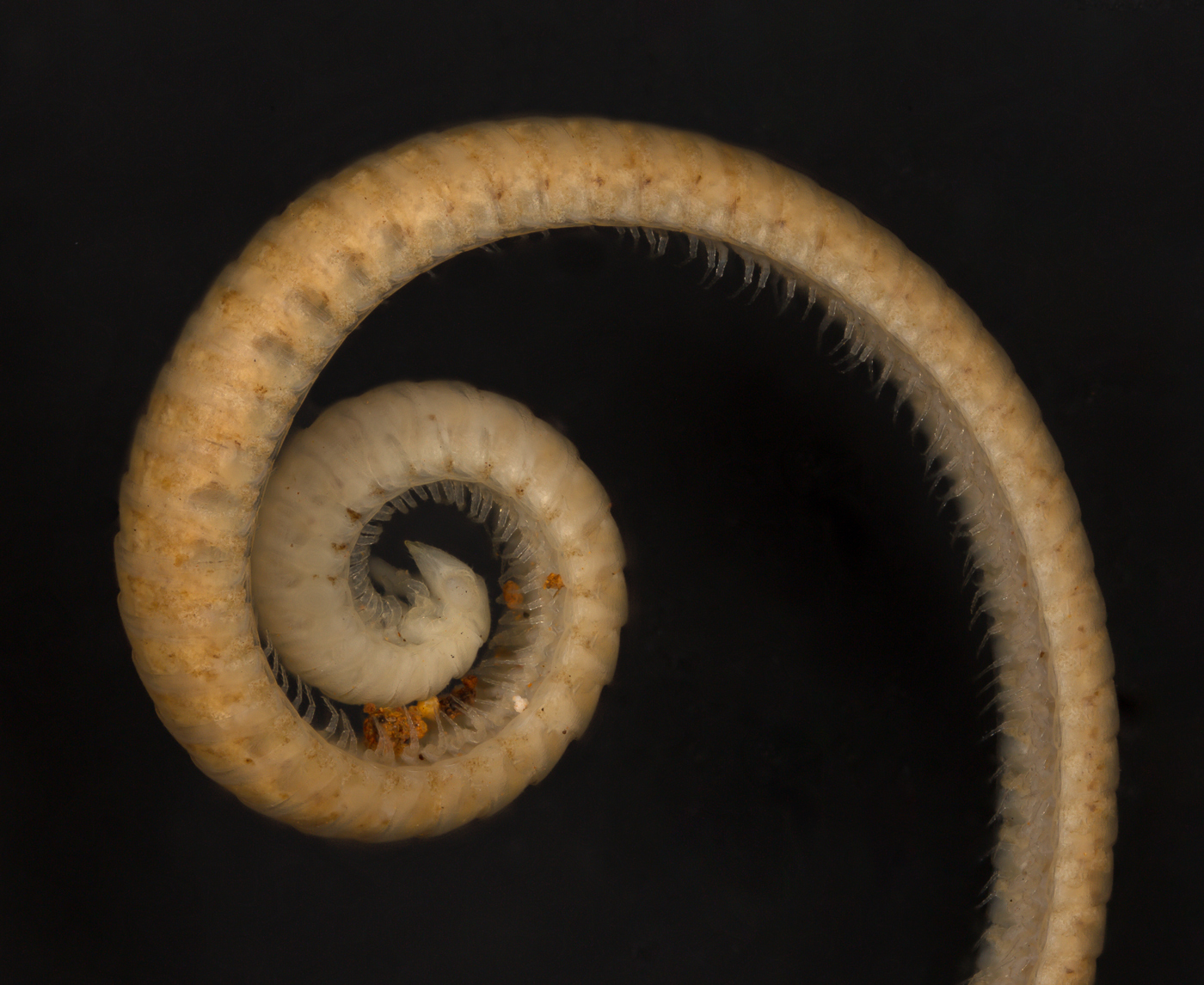 The pale, cream-colored millipedes lack eyes, and massive antennae protrude from their drill bit–shaped heads — all signs of a subterranean lifestyle. The researchers suspect E. persephone’s elongate, leg-packed body helps the creature maneuver through soil in up to eight different directions at once, like a tangled strand of mobile pasta.