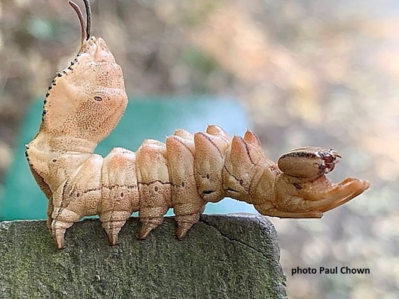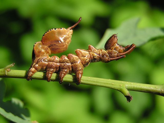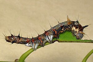 After hatching from the eggs, the Lobster Moth caterpillar emerges. Known for their unique and slightly unsettling appearance, the caterpillar has long projections and resembles a lobster, which is how it got its name.