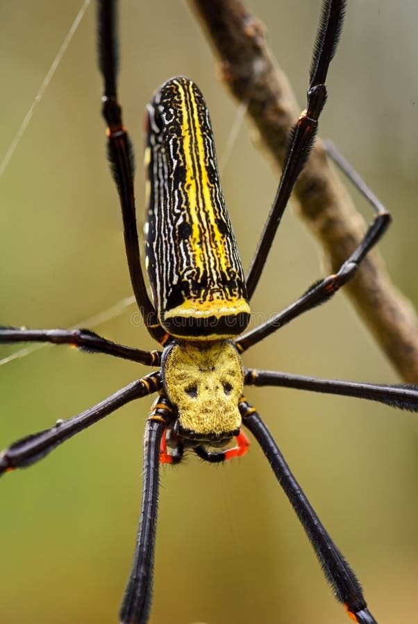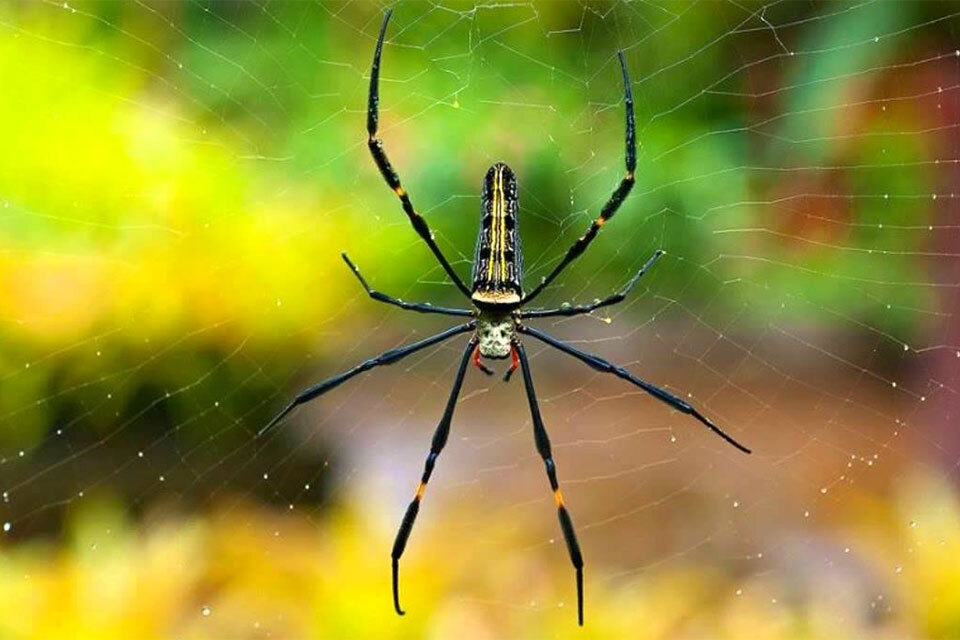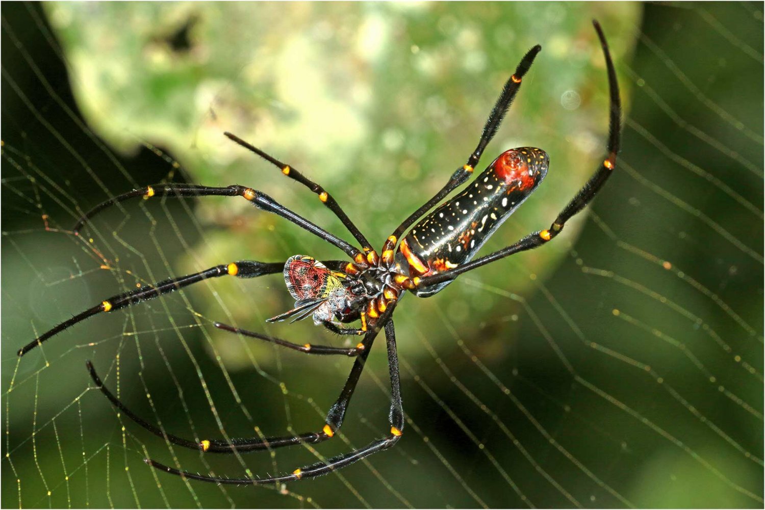 Giant golden orb weaver is known for its mild venom which is typically delivered through a bite using its fangs during the adult stage. This venom can affect both mammals, such as humans, dogs, and cats, along with smaller organisms including various insects. While the venom can cause discomfort and localized reactions in larger mammals, its effects are often more pronounced in smaller creatures, sometimes being fatal due to their size and physiological differences.