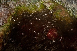 Not many mosquitos are found in a salt environment, so this species is unusual, as it is only found on the rocky shore. They are usually found associated with rock pools at high tide and the larval stage is very tolerant of very varied environmental conditions.