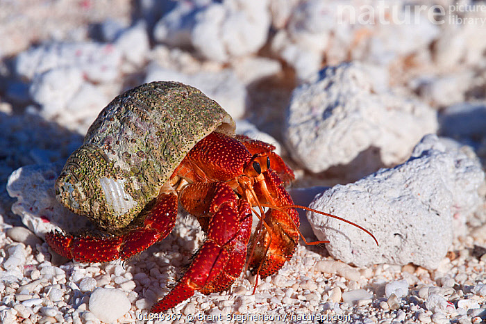 Strawberry hermit crabs like to keep a supply of water in their shells. They make a nightly trip to the sea to refresh their water store, though they require freshwater as well as saltwater because they use osmoregulation for hydration. They regulate their body temperature and avoid water loss by burying themselves deep in the sand during the heat of the day.
