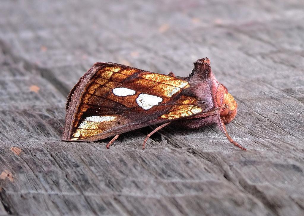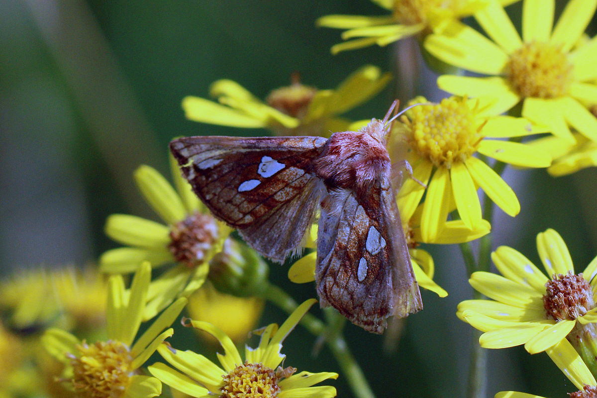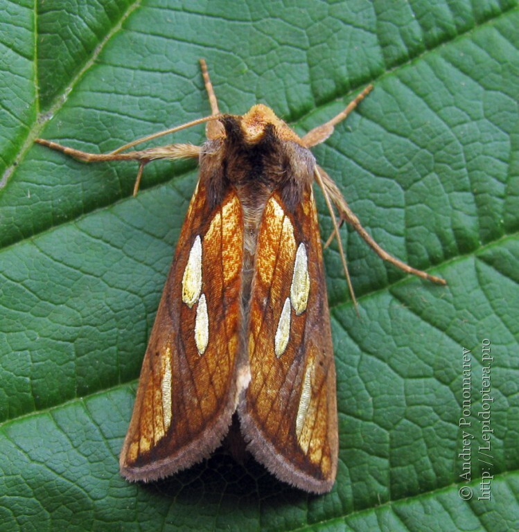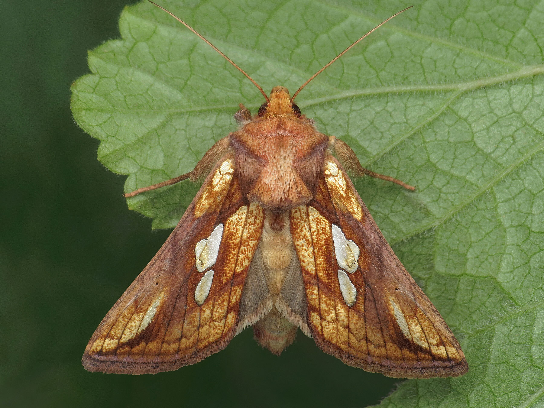 Plusia festucae (gold spot) is a species of moth of the family Noctuidae. It is found throughout the Palearctic realm from Ireland to Japan.