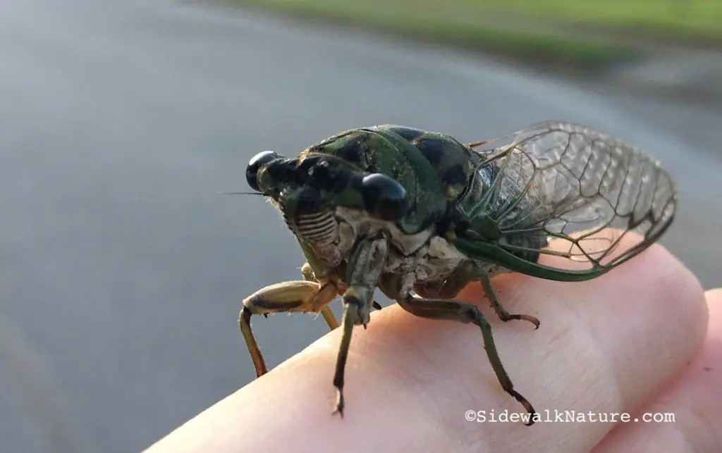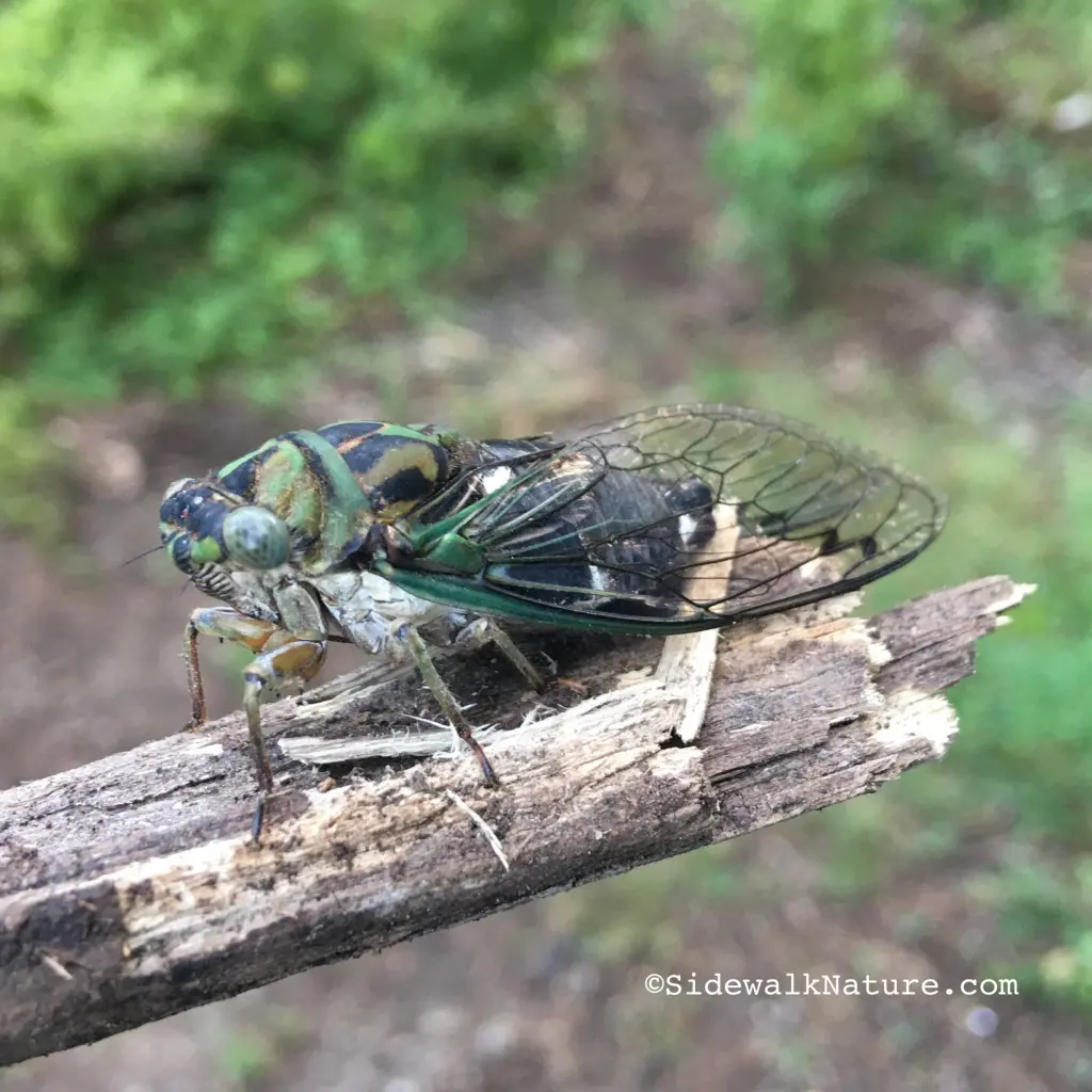 While sitting out on your back porch on a late summer evening, you might hear a slowly repeating, scratching noise coming from the top of one of your trees. This strange caller is none other than the Robinson’s annual cicada (Neotibicen robinsonianus), a large, generally uncommon cicada with a unique, somewhat bizarre call. This species is most common in the southeastern US and prefers cedar trees along with other conifers. While most common in the southeast, it can be heard from northern Texas north to extreme southern Ontario and east to the Carolinas during July through September. Neotibicen robinsonianus is very similar to N. linnei, but is often larger. This species also has a gradual wing bend as opposed to a sharp notch.
