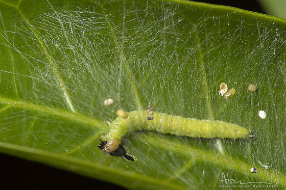 It is found in Florida and Cuba. The larvae feed on Ficus species, including Ficus citrifolia. They curl the leaves of their host plant and skeletonize the surface.