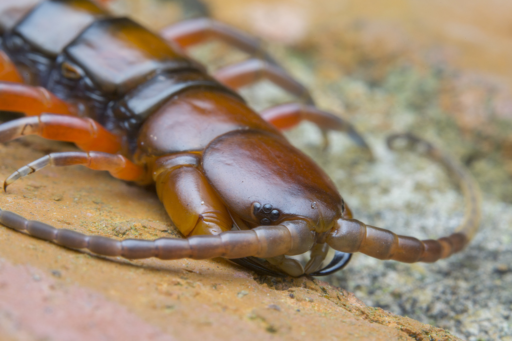 Pacific giant centipedes make their homes in the tropical climates of East Asia. They are one of three species found in Hawaii and have many color variants. It’s sometimes called the Chinese red-headed or jungle centipede.