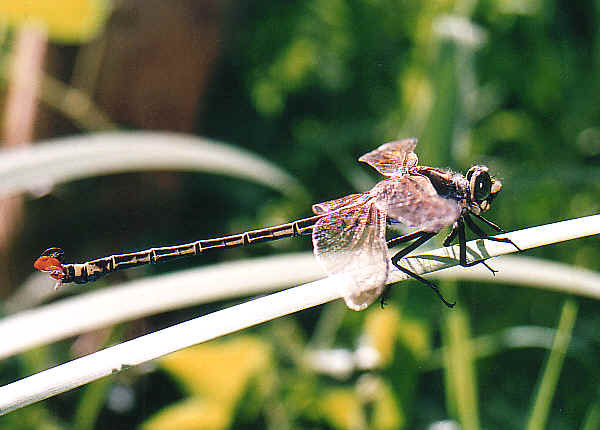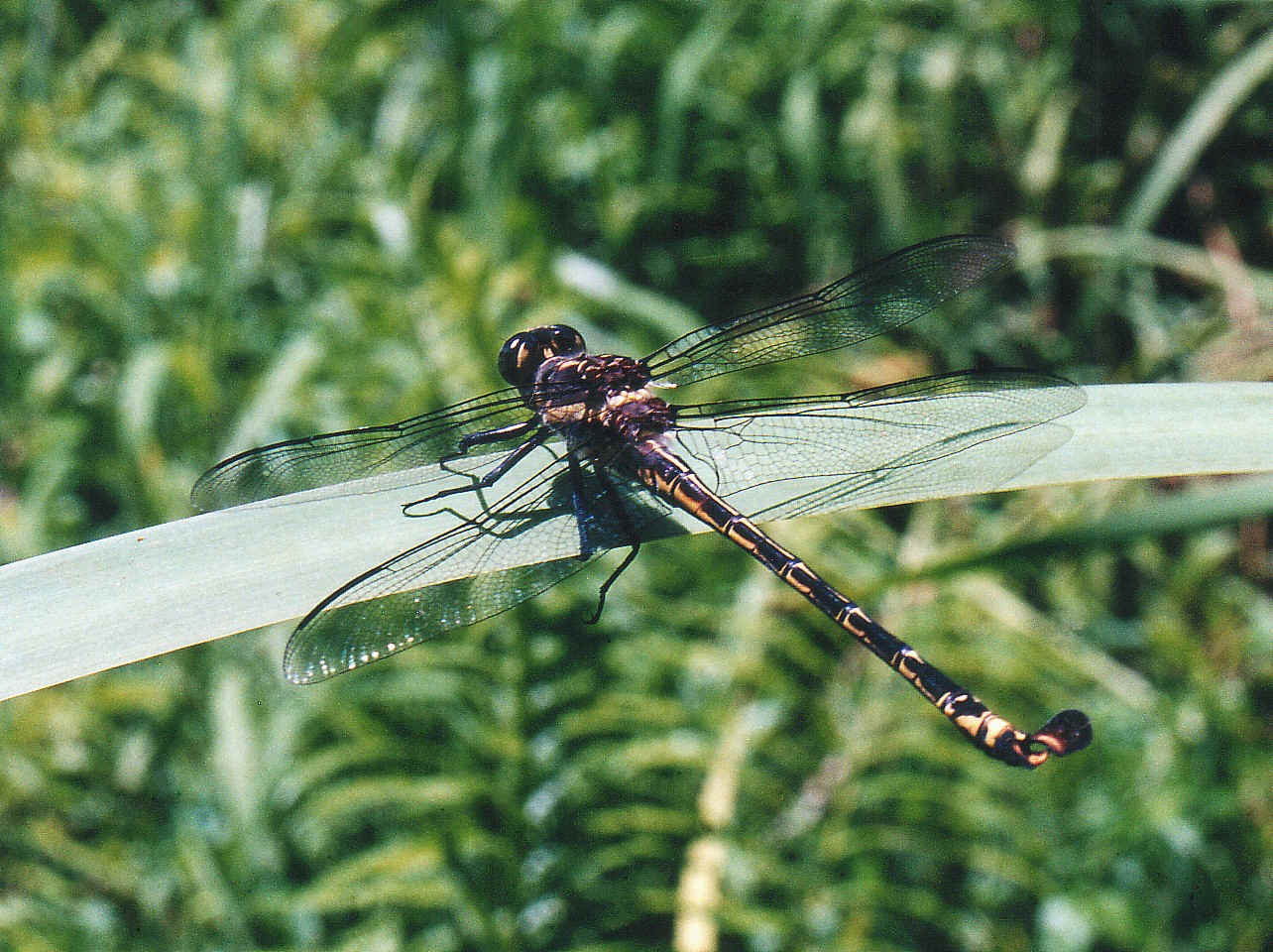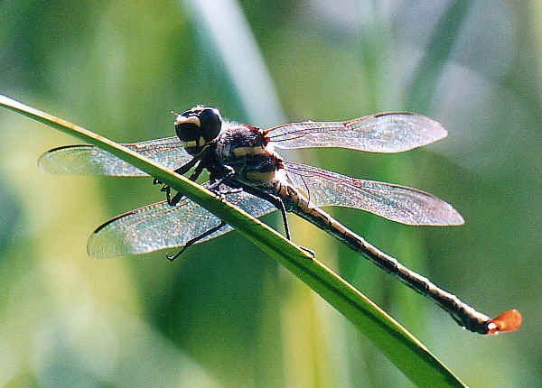 This species of dragonfly is found in Australia, originating from south-eastern Queensland and prefers swamp land with thick vegetation, often residing on sword grass.