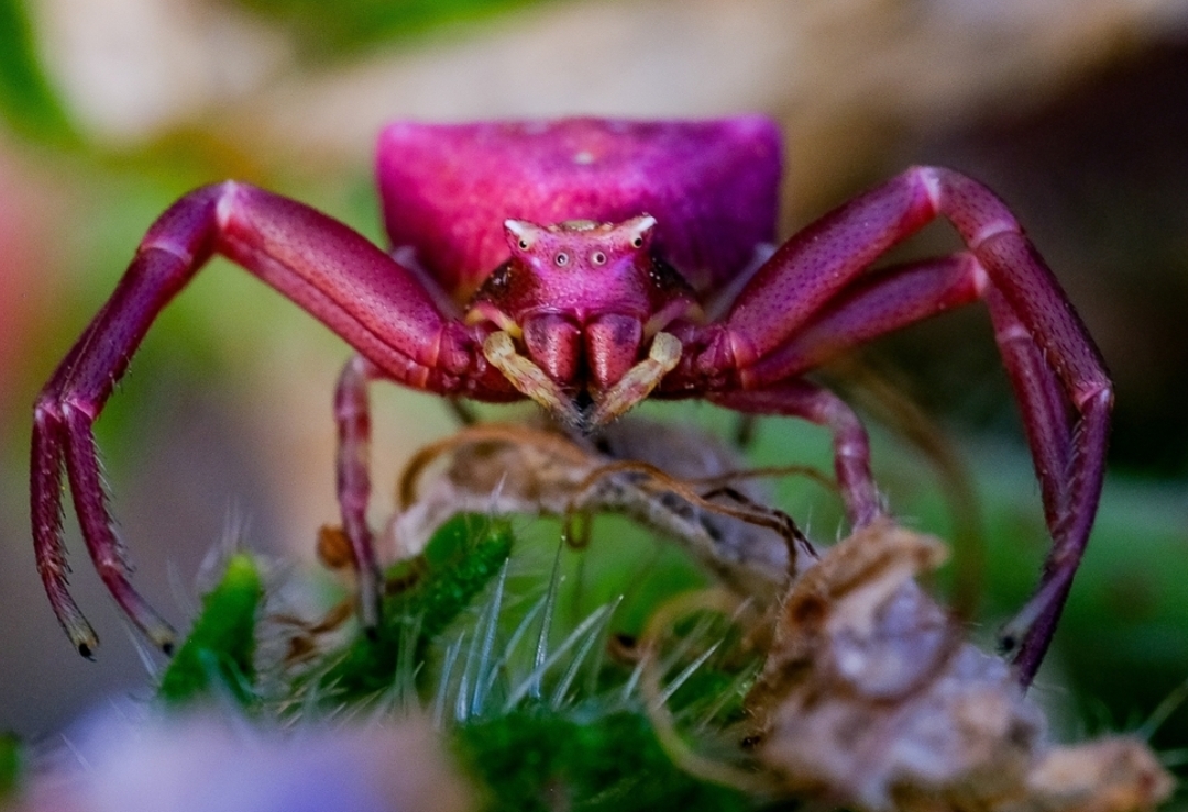 Thomisus onustus exhibits a range of colors, predominantly pink, white or yellow, which helps it blend into its floral surroundings. Color can vary based on environmental factors and the specific flowers it inhabits, enabling effective camouflage.