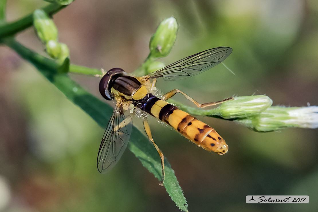 Sphaerophoria scripta, the long hoverfly, is a species of hoverfly belonging to the family Syrphidae. Sphaerophoria scripta can reach a length of 7–12 millimetres (0.28–0.47 in) and a wingspan of 5–7 mm. Body is long and narrow, with yellow and black bands. The wings are transparent.