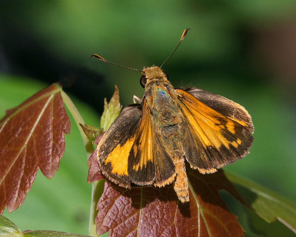 The Zabulon skipper (Lon zabulon) (sometimes called the southern dimorphic skipper) is a North American butterfly. This small butterfly has slim, triangular wings. The upperside of the male's wings is mostly orange with the margins being dark brown. The underside of the male's wings is mainly yellow orange with the margins being dark brown.