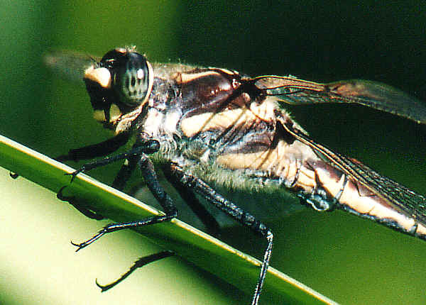 The Coastal Petaltails (Petalura litorea) belong to the family that is believed to be the oldest dragonfly family. Their abdomen is 7-7.9cm with orange petal-shaped claspers at the terminal end used to help grasp the female during mating. Both sexes have widely-spaced eyes and a predominantly brownish-black segmented body with contrasting light yellow linear markings along the back and sides.