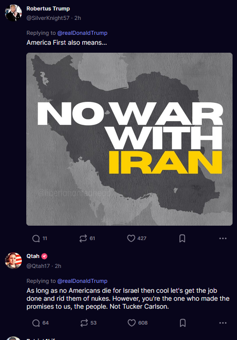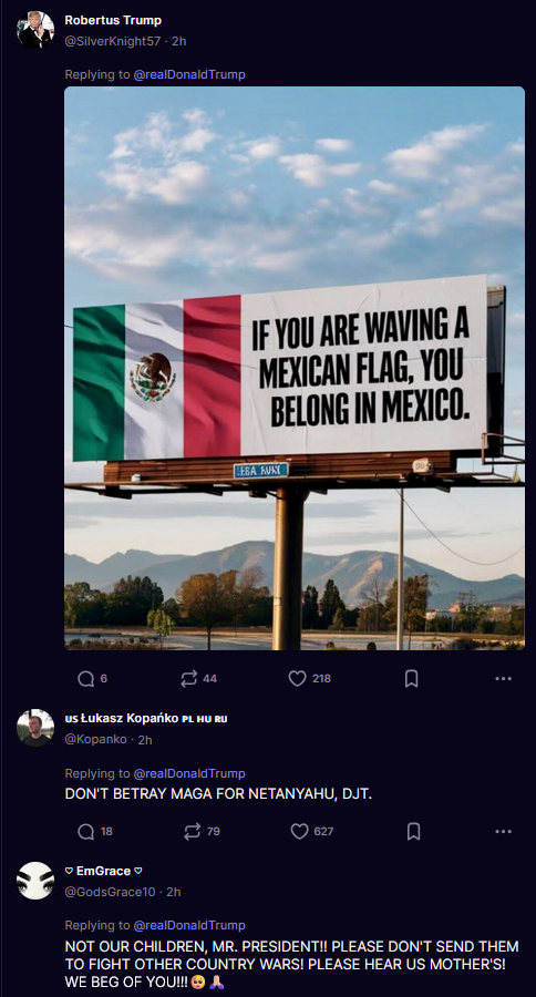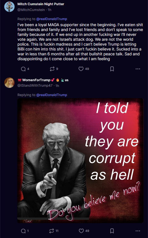 Lmao the way he just adds “MAKE AMERICA GREAT AGAIN” as a sort of MK-ULTRA trigger word to legitimize his zionist agenda for his base lol - soberano likes this.