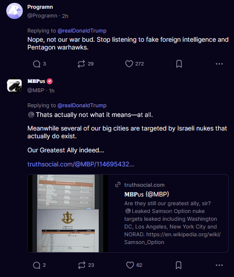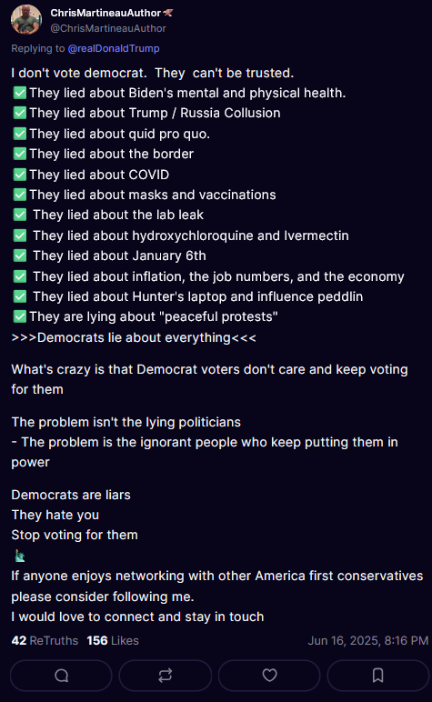 this guy is fully plugged into some kind of disinfo source, probably truthsocial itself -