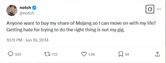 @Azur_Fenix i wonder how many more people would've hated him if he kept ownership of minecraft.