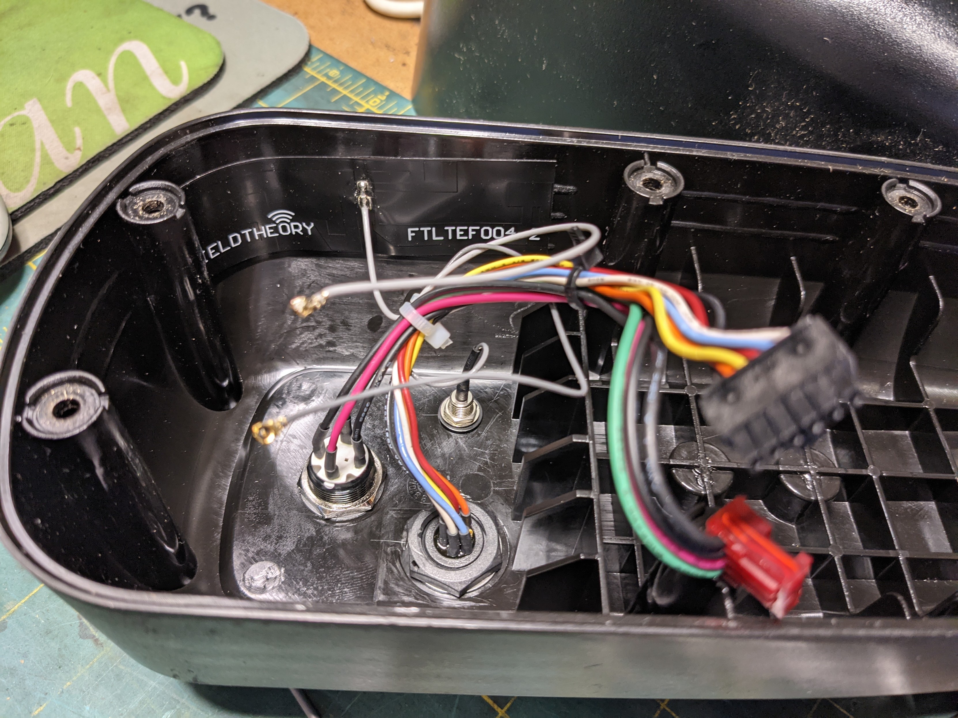 The back housing contains a momentary push button with led ring One internal cellular antenna One sma type antenna for the other cellular connection The weird 7 pin power data connection with only 6 pins connected