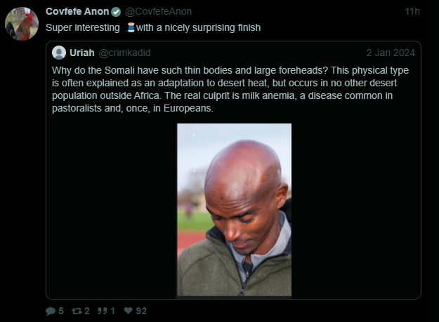 The TLDR is possible adaption to getting 50%+ calories a day from milk hinders iron absorption, and it seems to cause defects at a young age, so probably those that were that build were drastically more likely to survive. BowserNoodle ☦️ likes this. -