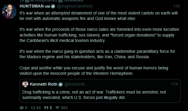 we have every right to bomb the fuck out of a narco boat, fuck em
