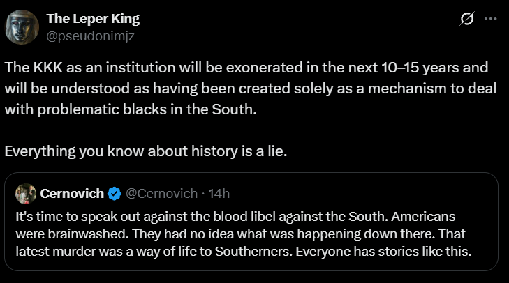 @HonkHonkBoom @BowsacNoodle KKK in the age of Tiktok would be a trip, especially with how inherently funny it is as an organization.
