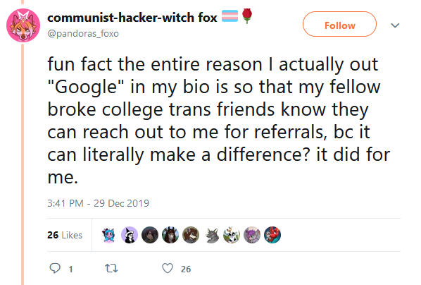 Oh, please. In the magical world of current year you could be a literal open Maoist tankie and have zero risk of getting tossed out into the streets for it. Silicon Valley is crawling with freaks like that.