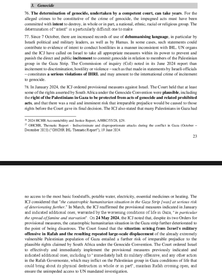 A sostegno dell'ipotesi di #genocidio in #Palestina c'è anche l'analisi indipendente, basata sui principi del diritto internazionale e umanitario, condotta da Francesca #Albanese, Special Rapporteur on the situation of human rights in the Palestinian Territory occupied since 1967.