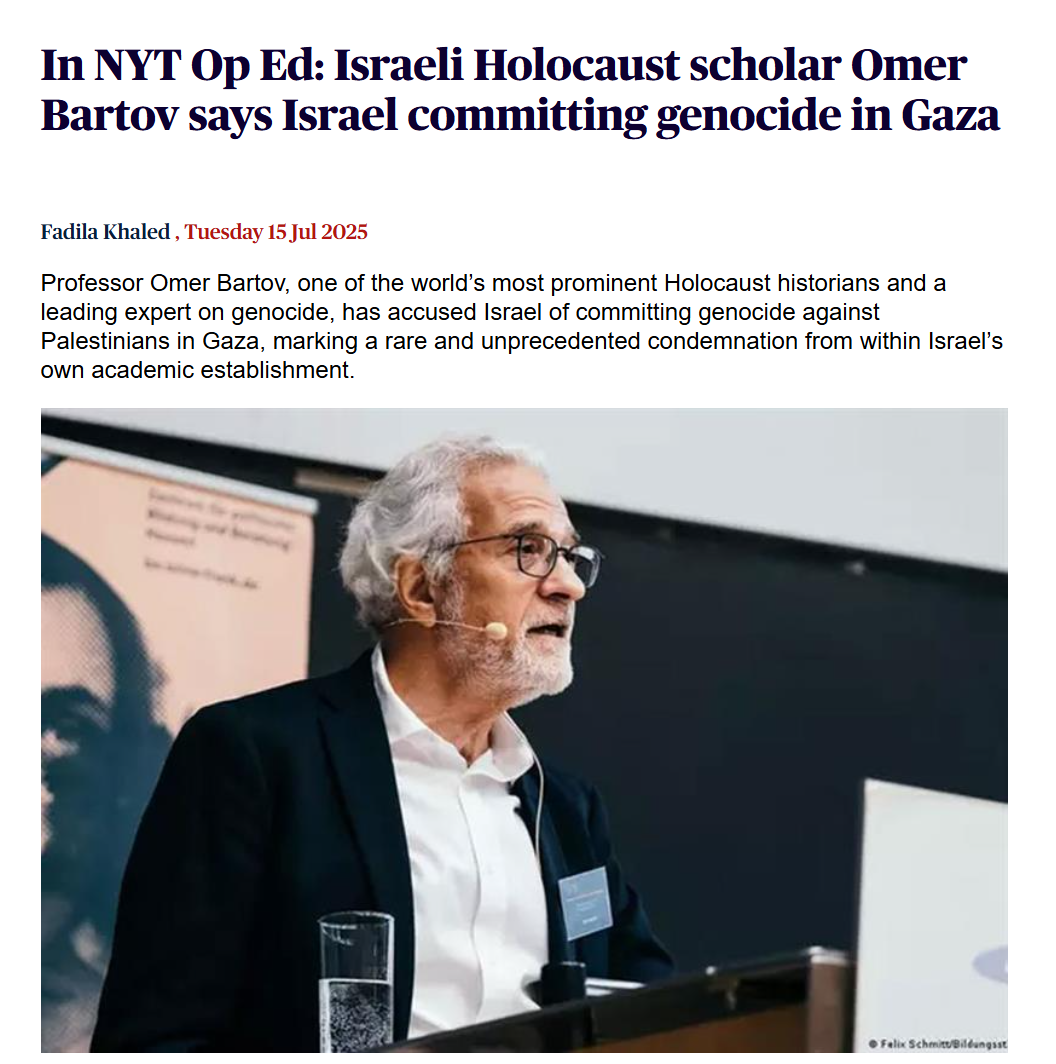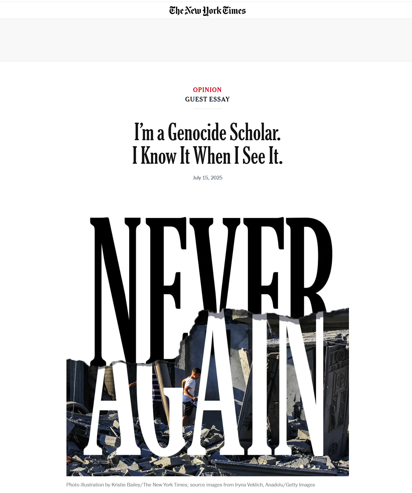 "The International Association of Genocide Scholars Declares that Israel’s policies and actions in Gaza meet the legal definition of genocide in Article II of the United Nations Convention for the Prevention and Punishment of the Crime of Genocide (1948)";