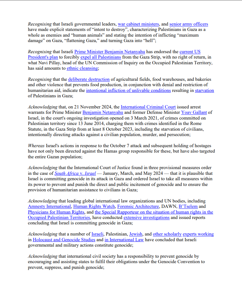 Ipotesi di #Genocidio in Palestina: Confermata dalla International Association of Genocide Scholars, l'associazione degli studiosi di genocidio, con una risoluzione del 31 agosto 2025: