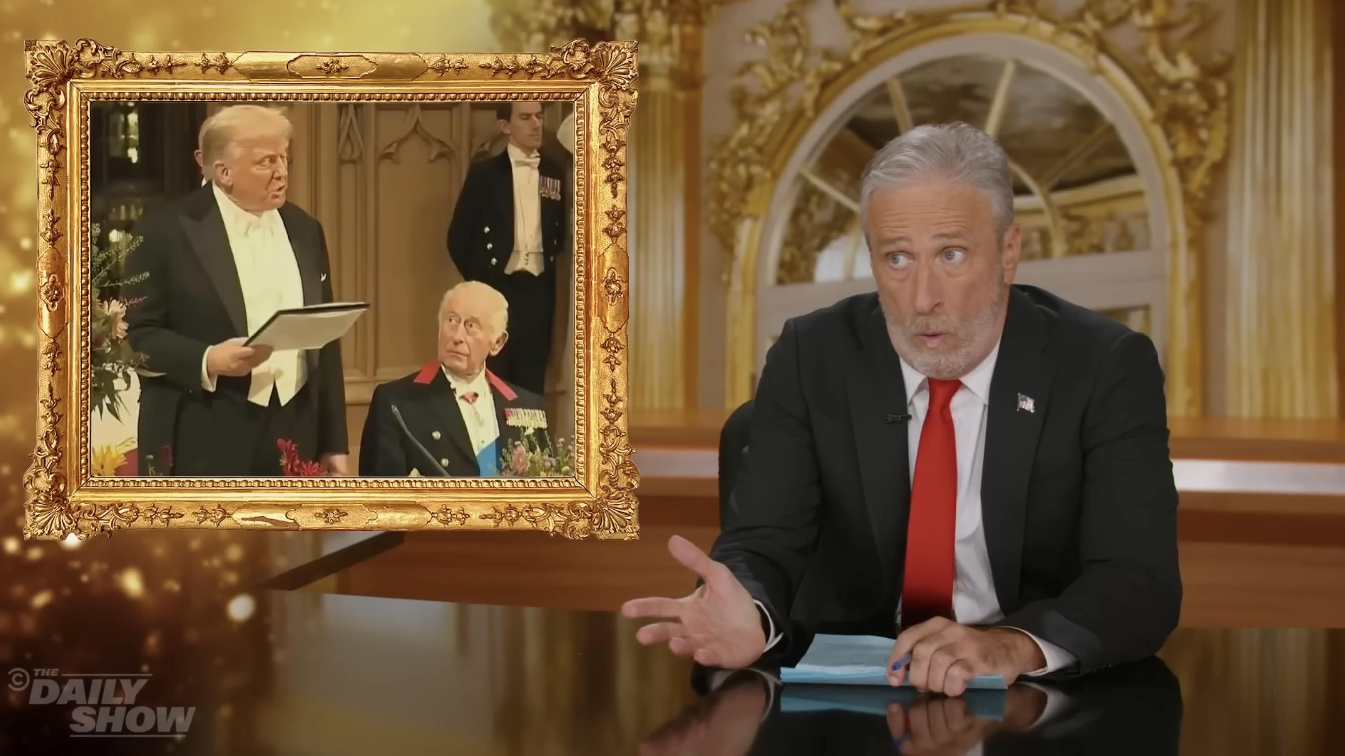 This episode of The Daily Show with Jon Stewart is absolutely perfect. Trump wants to control free speech, so Jon does an entire episode praising The Dear Leader in his new Trump approved gold studio.