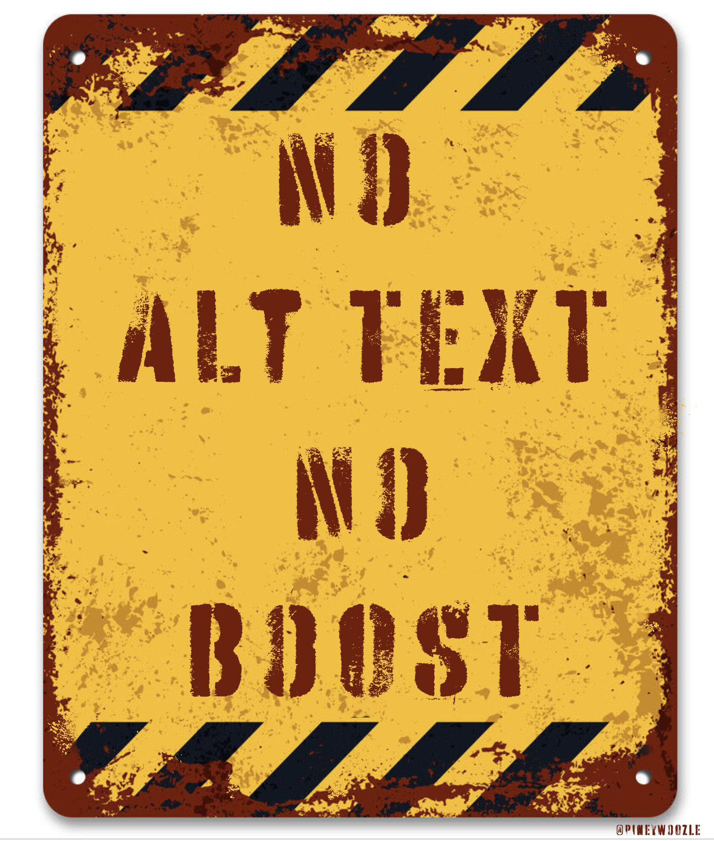 @Fragglemuppet Somewhere on my feed I posted an image with no alt text, and the post talks it up like it's the funniest meme ever made. It's a blank image. It's intent was to make this very point.