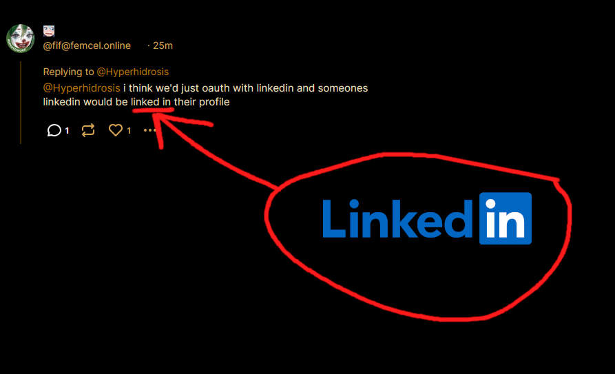 @Hyperhidrosis i think we'd just oauth with linkedin and someones linkedin would be linked in their profile
