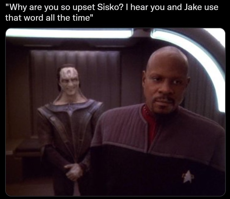 @BowsacNoodle but yeah, DS9 was pretty much just negro jesus dealing with all the flavors of jews, the victim bajoran jews, the genocidal cardassian jews, the merchant ferengi jews, the changelings, obvious, the scheming manipulating slave keeping Jem'Hadar jews... i just can't do it.