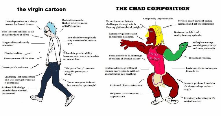 @William_The_Dragonborn @All_bonesJones @coolboymew @ArdainianRight I need to find that Virgin-Chad meme with Rick and Xavier Renegade Angel, though to the theoretical physics high IQ McDonald's Sauce machine the channel surfing bit absolutely captured what it was like to watch Prop 8 ads on TV when you don't know what faggots even are -