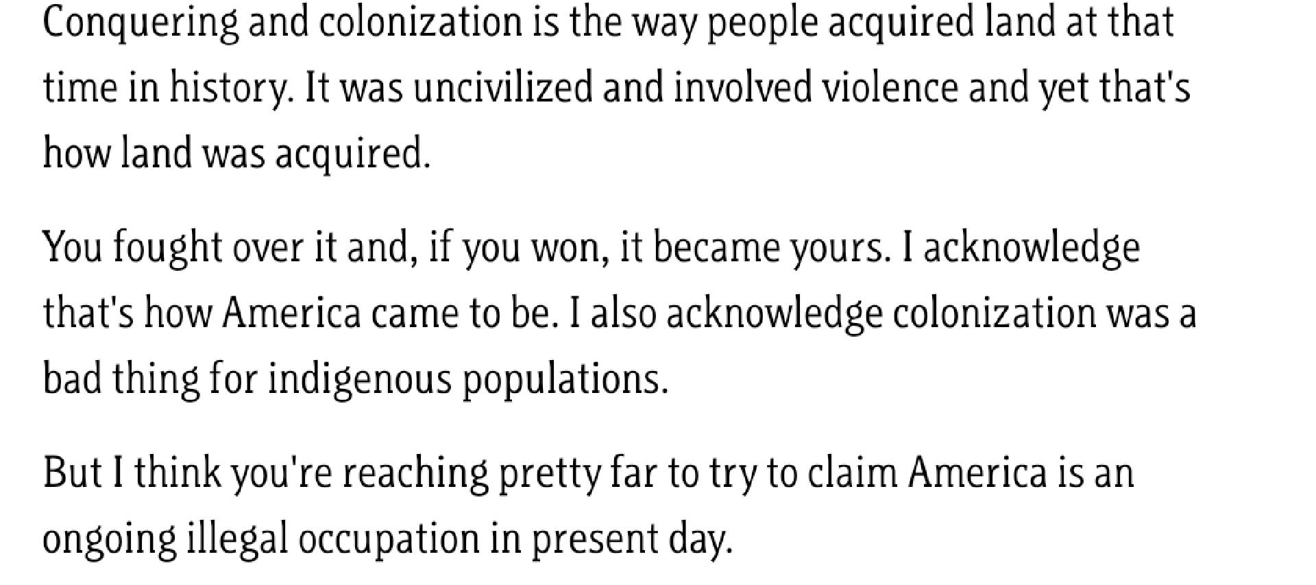 “Never before in human history was a large land mass like North America so sparsely populated that European settlers found fertile land mostly unoccupied. ”