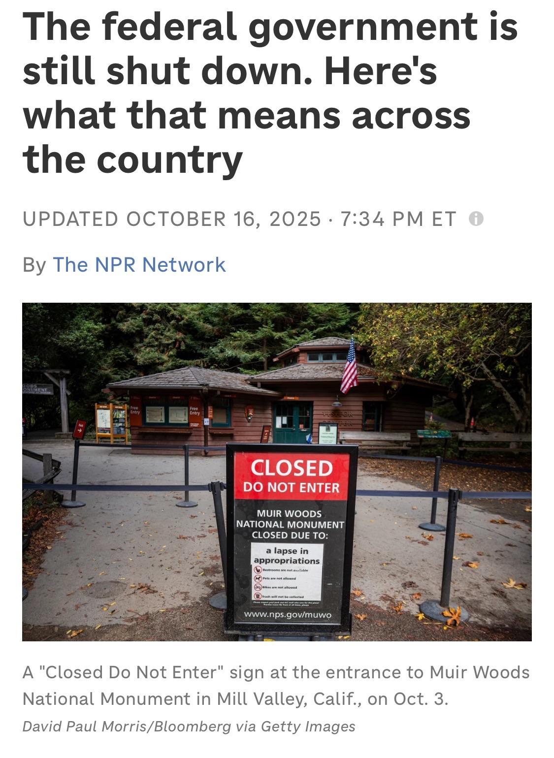 ~The federal government is still shut down. Here's what that means across the country (from October 16)~