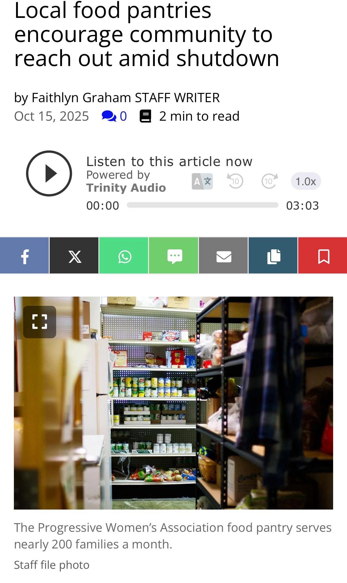 As the #GovernmentShutdown threatens SNAP benefits, food pantry volunteers call for donations…