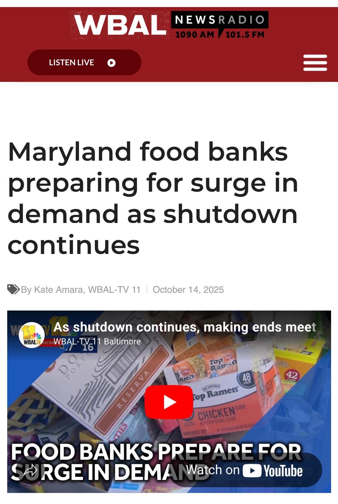 According to Wallerstedt of Maryland Food Bank, 1 in 3 (33%) Maryland families were experiencing food insecurity before the shutdown 👀