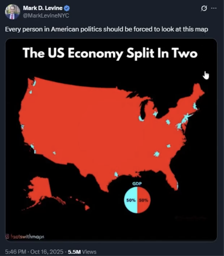 @Hoss The implication that the red area, which includes essentially all the agriculture and heavy industry, has no "product", whereas whatever financialist, on-paper bullshit the blue faggots engage in is real and valuable. :pepeLol: