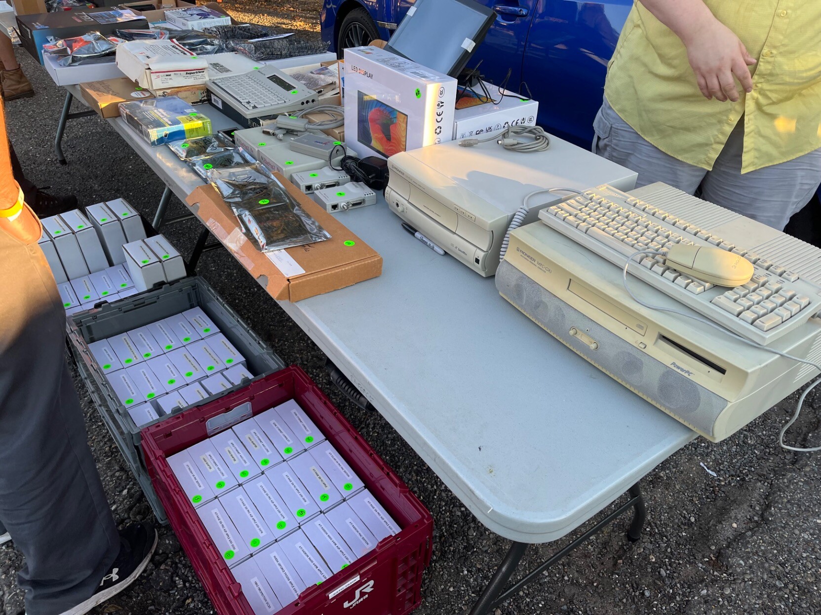 I would have to say, this was the table to be at if you wanted Mac stuff today. Guy was selling cheap - That boxed red iMac was $30, the boxed PowerBook under the table was the same price iirc. I didn't take too many photos, too busy at my table, but I'll share an album later.