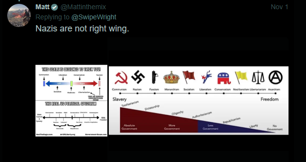 Nazis were extreme centrists. They hated immigration but had societal programs for the old and infirm. Traditional conservatives would never do half of their more liberal policies.