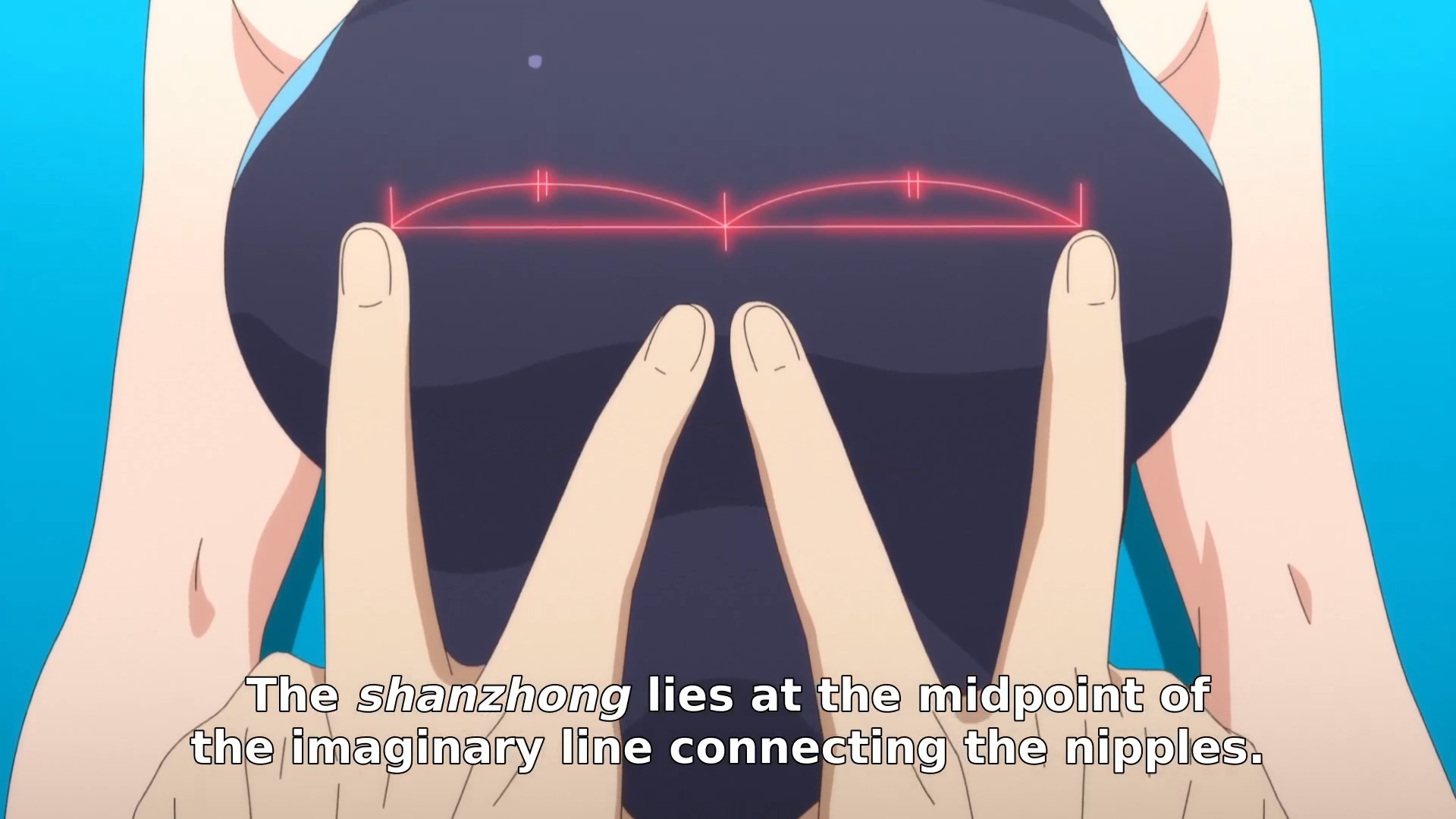 >Fondling boobs—I mean—stimulating the shanzhong relieves stress.
