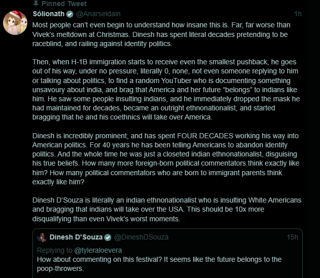 Dinesh is an anti-white piece of shit who deserves to be harassed off the internet. Hate has no home here. -