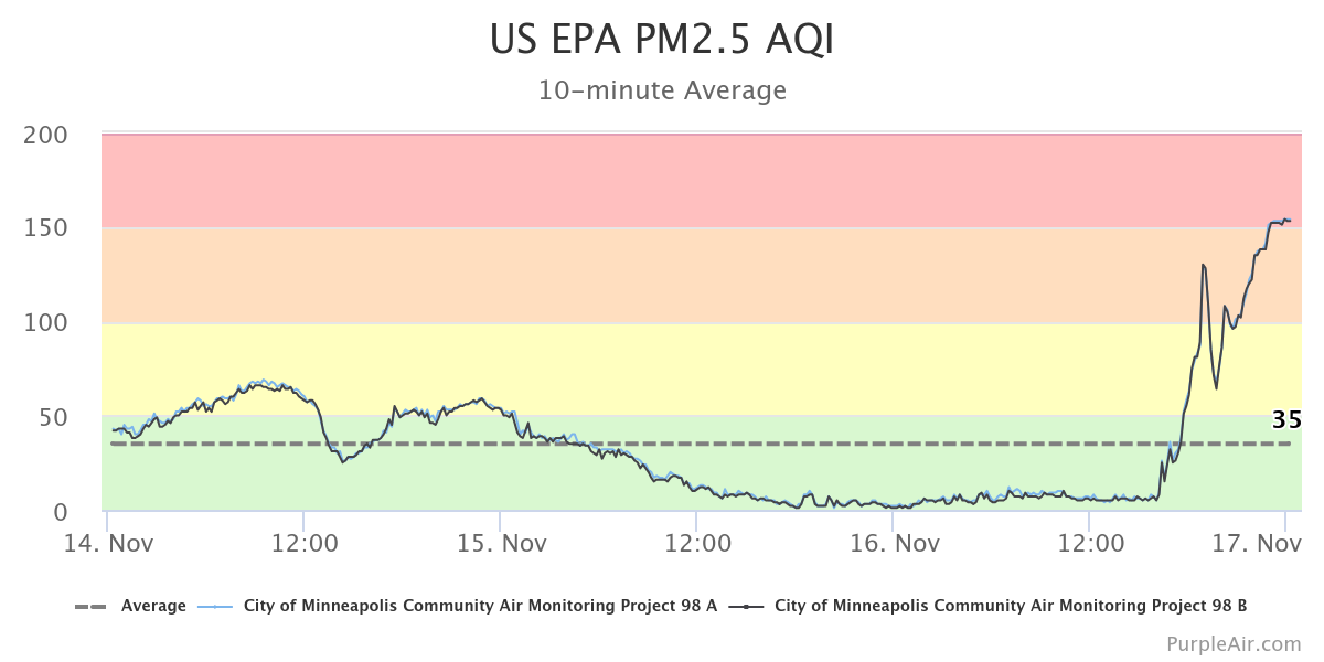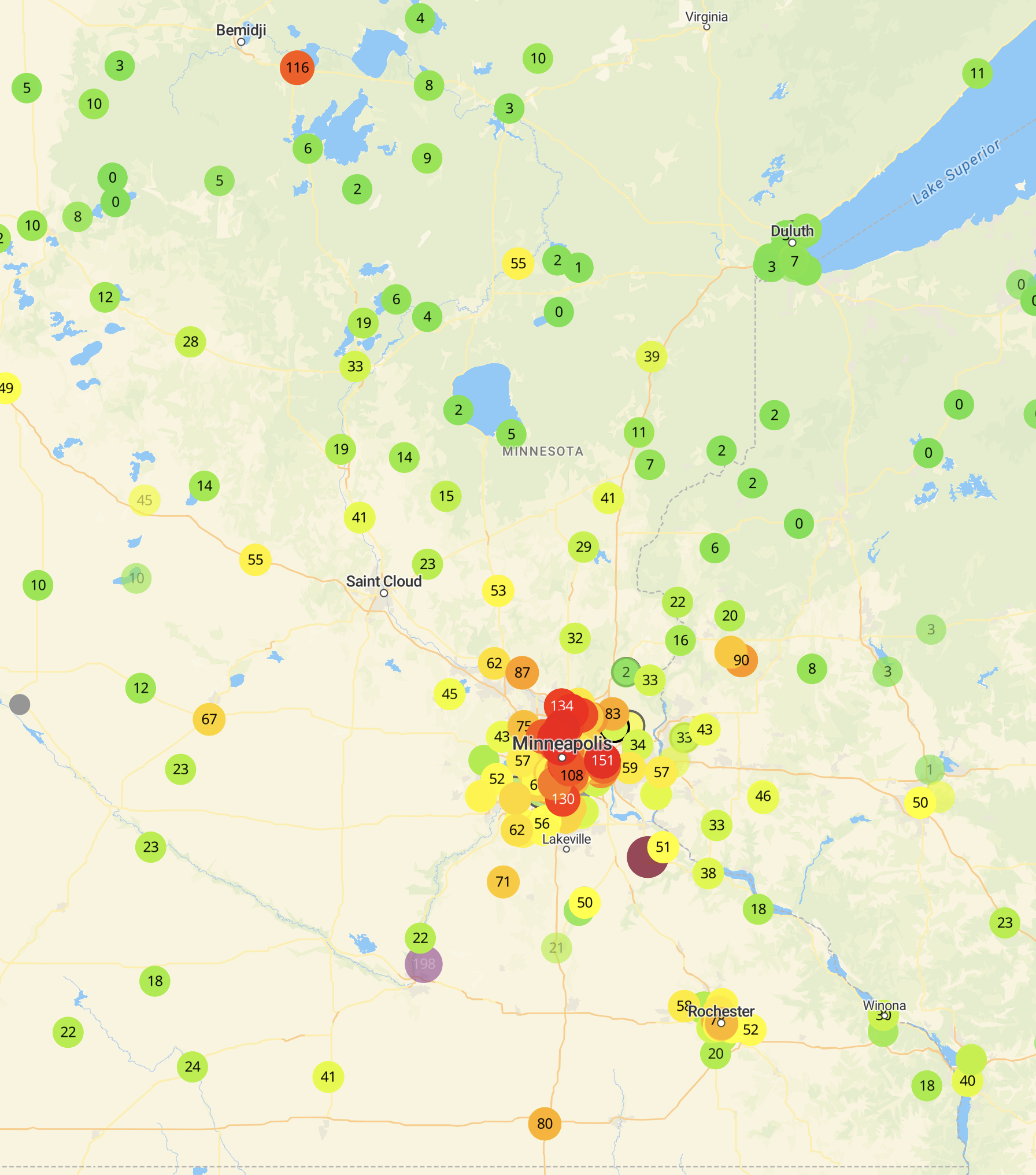 Huh: the air quality just suddenly went to heck right around MSP sometime early this evening. Did something catch on fire in the Twin Cities and I missed it…?